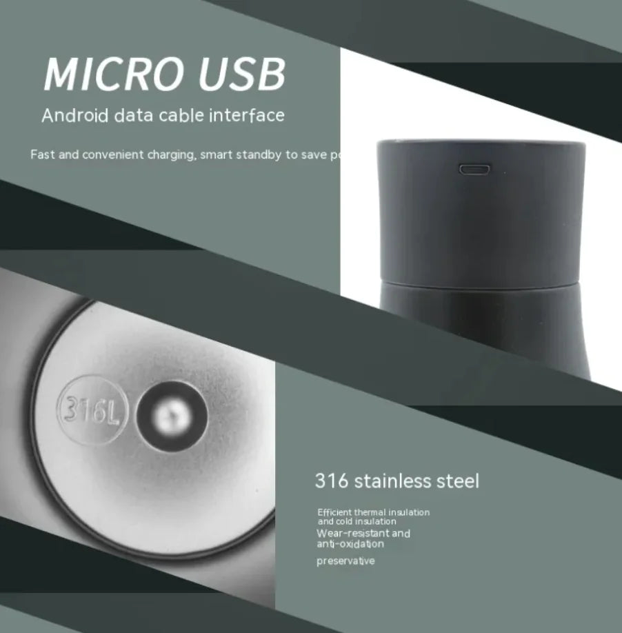 Temperaturvisning: Denne smarte vannflasken har en vanntett LED-skjerm med lavt energiforbruk, som ikke krever batteribytte. Den sensitive berøringsskjermen viser temperaturen på vannet – nyttig for å unngå å brenne munnen ved varmt vann.